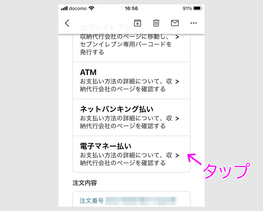 登録アドレスに、確認メールが届いた後、少しして、「お支払い番号のお知らせ」と書かれて支払い情報メールが届きます。